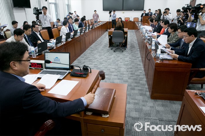(서울=포커스뉴스) 18일 오후 서울 여의도 국회에서 열린 가습기살균제 사고 진상규명과 피해구제 및 재발방지 대책마련을 위한 국정조사특별위원회 전체회의에 참석한 우원식 위원장이 안건 의결을 하고 있다.