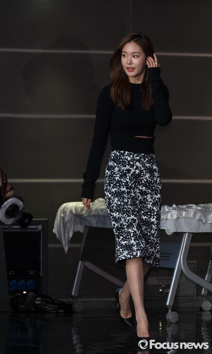 (서울=포커스뉴스) 18일 오후 서울 마포구 MBC 상암사옥에서 열린 MBC 수목미니시리즈 'W' 제작발표회에 참석한 배우 정유진이 포토타임을 위해 이동하고 있다.