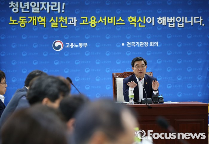 (세종=포커스뉴스) 이기권 고용노동부장관이 18일 오후 세종시 정부세종청사 고용노동부 대회의실에서 열린 전국기관장회의를 주재하고 있다.