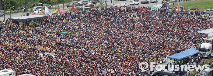 (세종=포커스뉴스) 전국건설기계연합회 구성원들이 18일 오후 세종시 정부세종청사 국토교통부 앞에서 굴삭기 수급조절을 통해 임대사업자를 보호할 것을 촉구하고 있다.