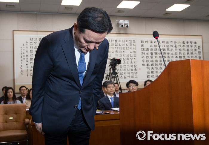 (서울=포커스뉴스) 김현웅 법무부 장관이 18일 오후 서울 여의도 국회에서 열린 법제사법위원회 전체회의에 출석해 진경준 검사장 구속 관련 법무부의 초기 대응에 대해 사과하고 있다.