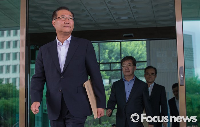 (서울=포커스뉴스) 18일 오후 서울 서초구 대검찰청에서 전국 고검장 간담회가 마친 후 박성재(맨 앞) 서울고검장을 비롯한 전국 고검장들이 청사 밖으로 발걸음을 옮기고 있다. 검찰은 이날 간담회를 통해 진경준 검사장의 뇌물수수 사건과 관련해 일선 검찰청의 의견을 수렴하고 대책을 논의하기로 밝혔으나, 언론에 비공개로 진행했다.