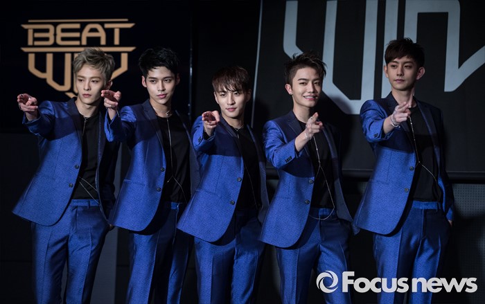 (서울=포커스뉴스) 18일 오후 서울 강남구 삼익아트홀에서 열린 아이돌 그룹 비트윈의 미니앨범 'COME TO ME' 발표 쇼케이스에 참여한 멤버들이 포토타임을 갖고 있다.