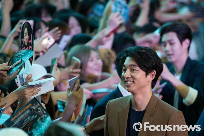 (서울=포커스뉴스) 18일 오후 서울 영등포구 타임스퀘어에서 열린 영화 '부산행' 레드카펫 행사에 참석한 배우 공유가 팬들을 향해 미소짓고 있다.