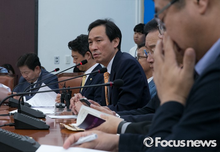 (서울=포커스뉴스) 19일 오전 서울 여의도 국회에서 열린 더불어민주당 사드대책위원회의에 참석한 한 의원이 자료를 살펴보고 있다.