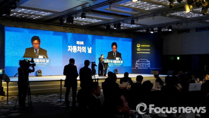 한편 이날 세미나에서 KAMA는 선진국 자동차회사들의 노사관계를 토대로 만든 '자동차산업의 노사관계 선진화를 위한 글로벌 스탠다드 방안'을 제시하기도 했다. 방안에는 △노사 간 고용과 임금에 대한 합리적인 빅딜 협상구조 전환 △호봉제 완화, 성과형 임금체계 강화 △도급제 활성화·파견근로 확대 등 아웃소싱의 탄력적 활용 등이 주요 내용으로 담겼다.12일 오후 서울 삼성동에 위치한 인터컨티넨탈 서울 코엑스호텔에서 열린 '제13회 자동차의 날' 기념식에서 김용근 한국자동차산업협회(KAMA) 회장이 기념사를 하는 모습. 2016.05.12 김성훈 기자 shkim1222@focus.co.kr