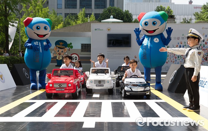 (서울=포커스뉴스) 19일 오전 서울 송파구 어린이 교통안전교육장에서 어린이들이 모바일키즈 프로그램을 통해 교통안전교육을 체험하고 있다. 메르세데스-벤츠 사회공헌위원회와 도로교통공단은 지난 2015년부터 1년 7개월여 동안 어린이교통공원을 개보수 지원했다.