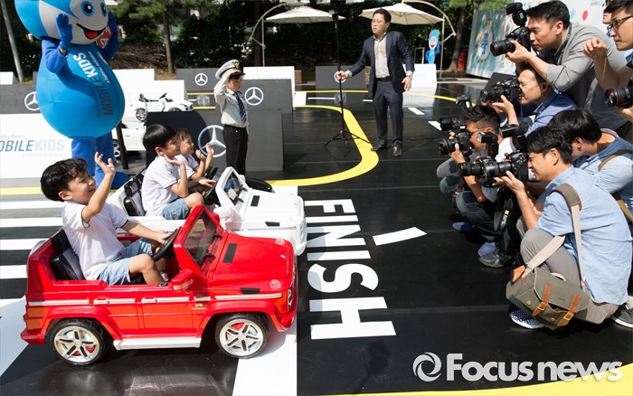 (서울=포커스뉴스) 19일 오전 서울 송파구 어린이 교통안전교육장에서 어린이들이 모바일키즈 프로그램을 통해 교통안전교육을 체험하고 있다. 메르세데스-벤츠 사회공헌위원회와 도로교통공단은 지난 2015년부터 1년 7개월여 동안 어린이교통공원을 개보수 지원했다.
