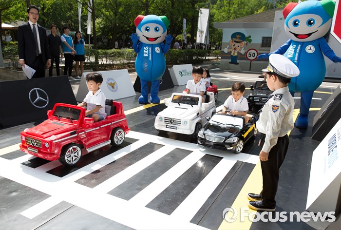 (서울=포커스뉴스) 19일 오전 서울 송파구 어린이 교통안전교육장에서 어린이들이 모바일키즈 프로그램을 통해 교통안전교육을 체험하고 있다. 메르세데스-벤츠 사회공헌위원회와 도로교통공단은 지난 2015년부터 1년 7개월여 동안 어린이교통공원을 개보수 지원했다.