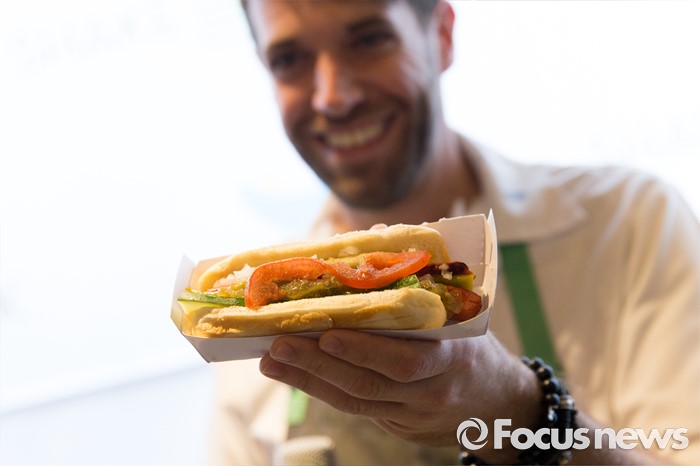 (서울=포커스뉴스) 19일 오전 서울 강남구 쉐이크쉑 강남점에서 열린 미디어 프리젠테이션 행사에서 Shack-cago Dog가 공개되고 있다.