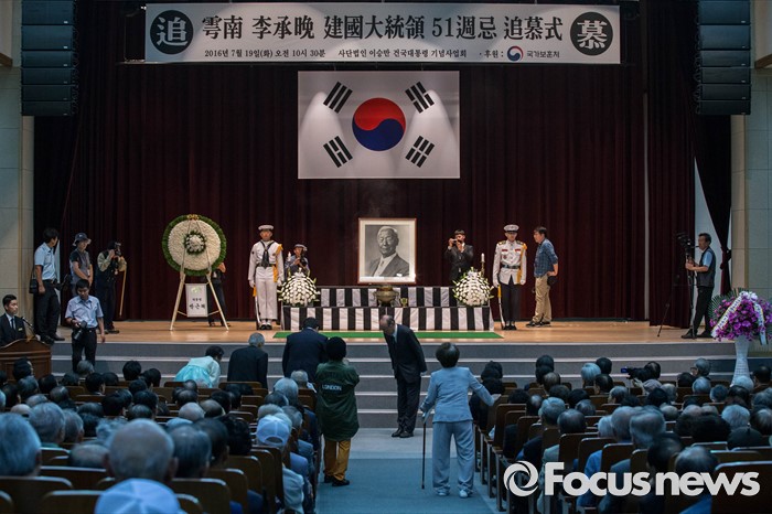(서울=포커스뉴스) 19일 오전 서울 동작구 국립현충원 현충관에서 우남 이승만 전 대통령 51주기 추모식이 열리고 있다.
