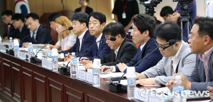 (세종=포커스뉴스) 19일 오후 세종시 정부세종청사 해양수산부 대회의실에서 열린 제4차 수산물 수출대책회의에서 참석자들이 김영석 장관의 인사말을 듣고 있다.