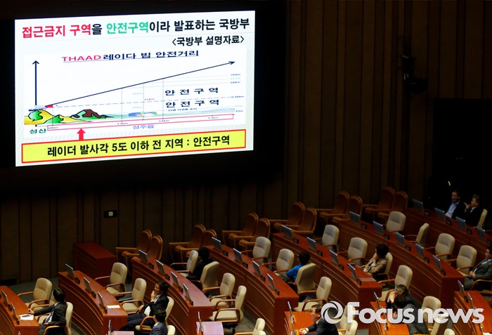 (서울=포커스뉴스) 19일 오후 서울 여의도 국회에서 열린 344회 국회(임시회) 1차 본회의, 사드(THAAD·고고도미사일방어체계) 배치에 대한 긴급현안질문에 참석한 이완영 새누리당 의원이 국방부 설명자료를 보여주며 한민구 국방부 장관에게 질문하고 있다.