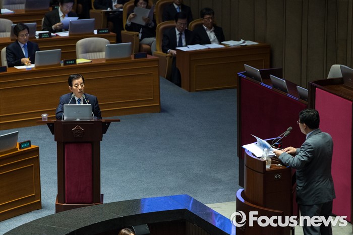 △ 사드배치 관련 질의응답하는 한민구 국방부 장관