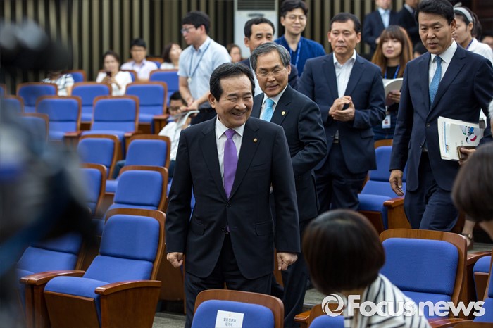 | △ 공청회장으로 들어서는 정세균 국회의장-우윤근 사무총장 |