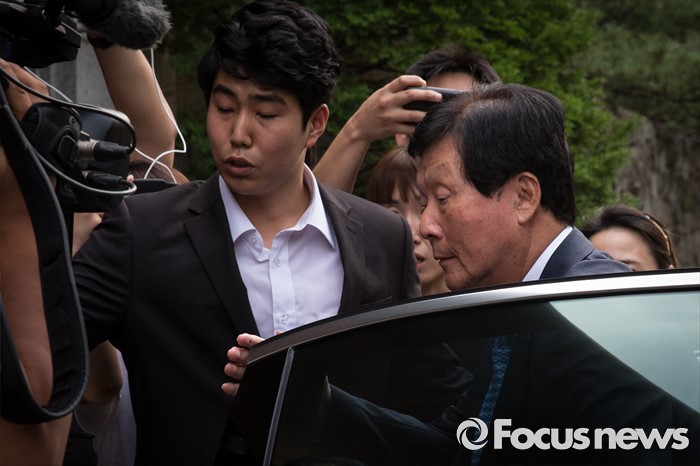 (서울=포커스뉴스) 신준호 푸르밀 대표이사 회장이 19일 오후 고(故) 신진수 씨의 제사를 위해 서울 성북구 신동주 전 일본 롯데홀딩스 부회장의 자택으로 들어서고 있다.