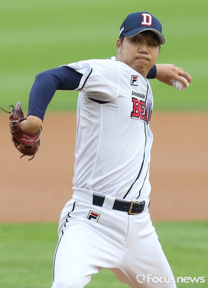 | △ 투구하는 두산 선발투수 장원준 |