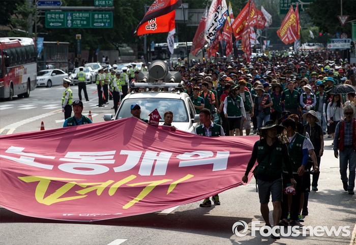 (서울=포커스뉴스) 전국민주노동조합총연맹(민주노총)이 반(反)노동 정부정책, 최저임금 일방결정, 한상균 민주노총 위원장 실형선고 등에 반발해 '1차 총파업-총력투쟁 대회'를 진행한다.