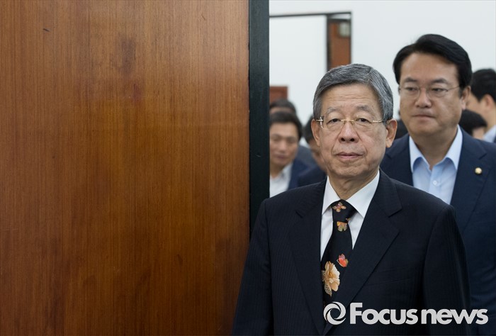 (서울=포커스뉴스) 20일 오전 서울 여의도 국회에서 열린 새누리당 혁신비상대책위원회의에 김희옥 위원장과 정진석 원내대표가 참석하고 있다.
