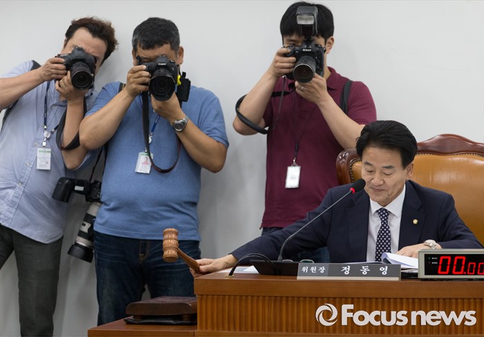 (서울=포커스뉴스) 20일 오전 서울 여의도 국회에서 열린 미래일자리 특별위원회 전체회의에 참석한 정동영 위원장이 안건 의결을 하고 있다.