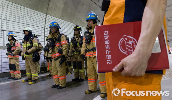 (서울=포커스뉴스) 20일 오후 서울 관악구 봉천터널 내에서 서초소방서, 방배경찰서 대원들이 강남순환도로 화재대응 유관기관 합동훈련을 하고 있다.