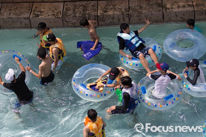(용인=포커스뉴스) 서울과 수도권 등 전국 대부분 지역에 폭염주의보가 내려진 20일 오후 경기도 용인 에버랜드 캐리비안베이에서 시민들이 물놀이를 즐기고 있다.
