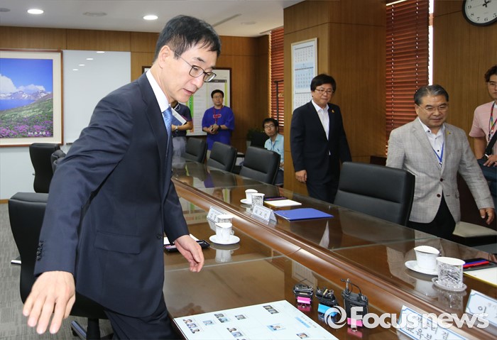 (세종=포커스뉴스) 이준식 사회부총리 겸 교육부장관이 20일 오후 세종시 정부세종청사 교육부 접견실에서 새롭게 구성된 전국시도교육감협의회 회장단과 간담회를 갖기 위해 자리에 앉고 있다.