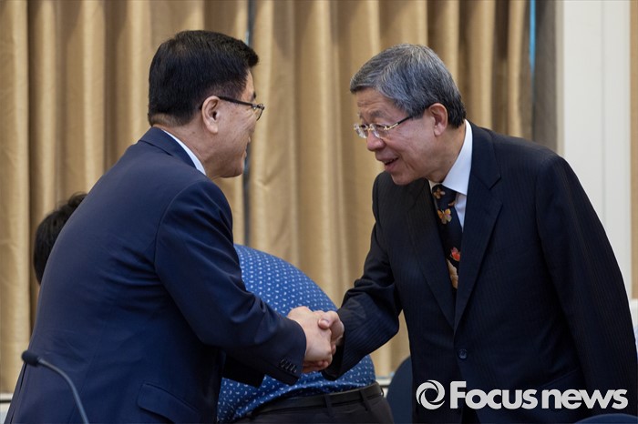 | △ 악수하는 김희옥 위원장-김광림 정책위의장 |