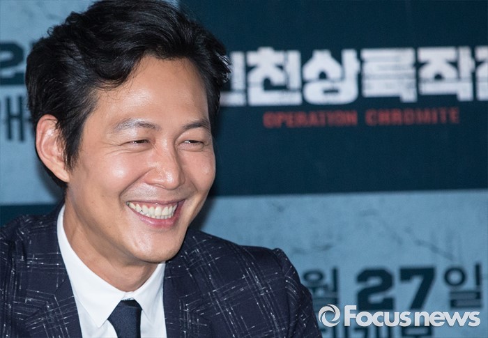 (서울=포커스뉴스) 20일 오후 서울 성동구 왕십리 CGV에서 열린 영화 '인천상륙작전' 언론시사회에 참석한 배우 이정재가 미소를 짓고 있다.