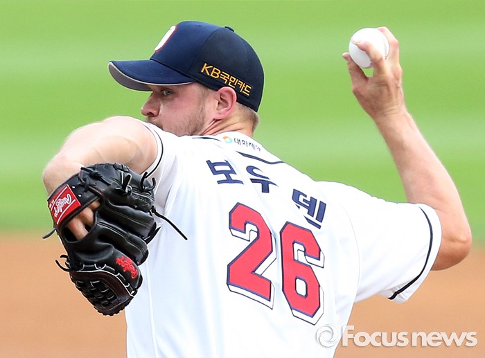 (서울=포커스뉴스) 20일 서울 잠실구장에서 열린 2016 프로야구 삼성-두산 경기에서 1회초 두산 선발투수 보우덴이 투구하고 있다.