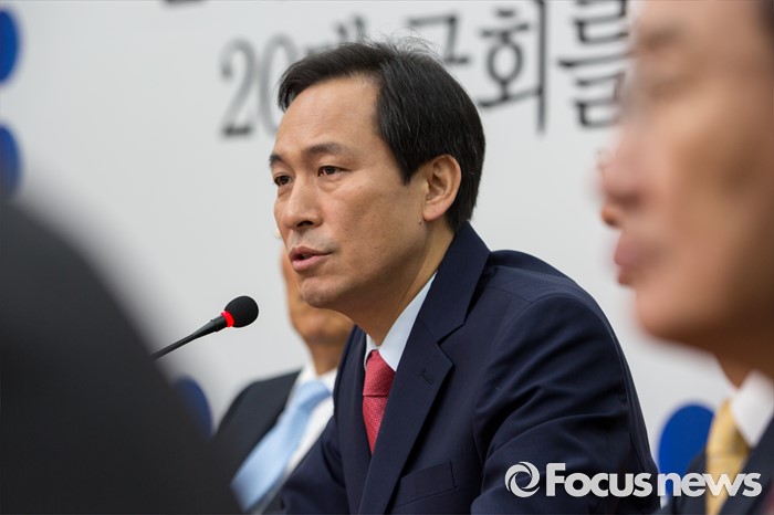 | △ 사드배치 관련 발언하는 우상호 원내대표 |