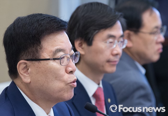 (서울=포커스뉴스) 21일 오전 서울 여의도 국회 귀빈식당에서 열린 2016년 세법개정 당정협의에 참석한 김광림 새누리당 정책위의장이 모두발언을 하고 있다.
