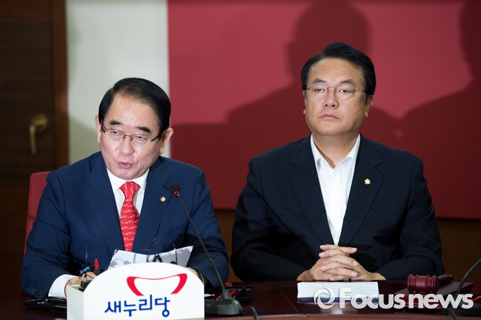 (서울=포커스뉴스) 박명재 새누리당 사무총장이 21일 오전 서울 여의도 새누리당사에서 열린 혁신비상대책위원회의에 참석해 모두발언 하고 있다.