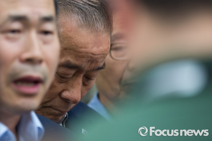 (서울=포커스뉴스) 원정부 한국원폭피해자협회 서울지부장이 21일 오전 서울 양천구 서울남부지방법원에서 열린 국가를 상대로 한 손해배상 청구 소송 선거공판이 끝난 뒤 기자회견 중 고개를 숙이고 있다. 서울남부지법 민사합의15부(부장판사 이광영)는 한국원폭피해자협회 서울지부 회원 230명이 국가를 상대로 낸 손해배상 청구 소송에서 원고 패소로 판결했다.