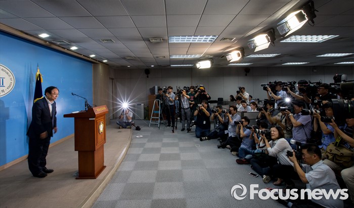 (서울=포커스뉴스) 이주영 새누리당 의원이 21일 오전 서울 여의도 국회에서 8.9 전당대회 당대표 출마 선언 기자회견에 앞서 인사하고 있다.