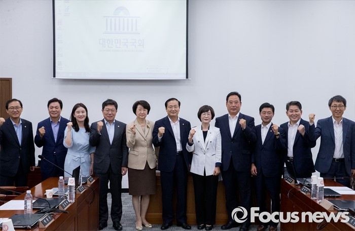 (서울=포커스뉴스) 21일 오전 서울 여의도 국회에서 민생경제 특별위원회 전체회의를 마친 김상희 위원장과 의원들이 취재진을 향해 포즈를 취하고 있다.