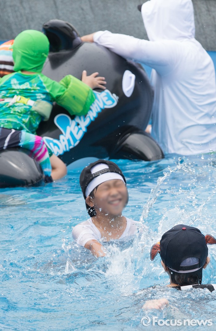 (서울=포커스뉴스) 21일 오후 서울 광진구 뚝섬 한강공원 수영장을 찾은 어린이들이 물놀이를 즐기고 있다.