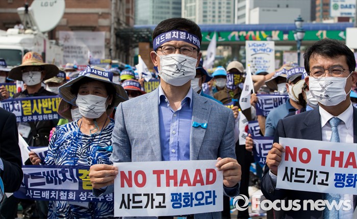 (서울=포커스뉴스) 21일 오후 서울역 광장에서 사드 배치 반대를 요구하는 경북 성주군민 2천여 명이 대규모 상경집회에 참가해 침묵시위를 하고 있다.