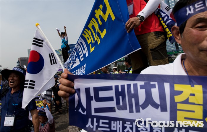 (서울=포커스뉴스) 21일 오후 서울역 광장에서 사드 배치 반대를 요구하는 경북 성주군민 2천여 명이 대규모 상경집회를 하고 있다.