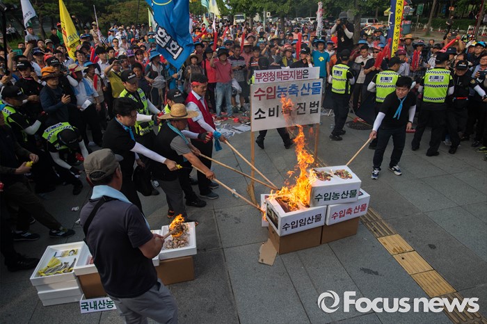 | △ 수입농수산물 불태우는 성난 농축산인 |