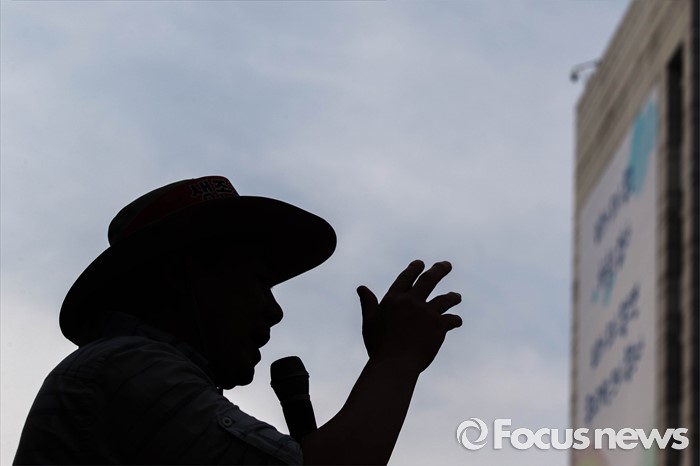 (서울=포커스뉴스) 21일 오후 서울 여의도 산업은행 본점 앞에서 농축산물의 김영란법 적용 제외를 요구하는 전국 농축산인 총궐기대회가 열리고 있다.