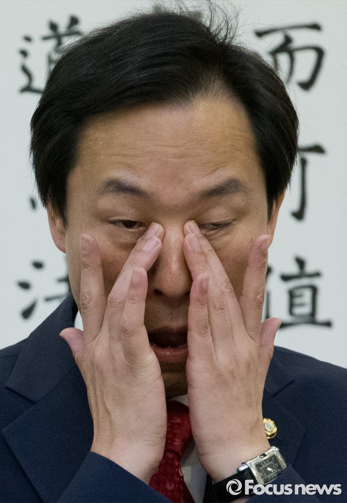 (서울=포커스뉴스) 22일 오전 서울 여의도 국회 귀빈식당에서 열린 한반도 경제·문화포럼 창립총회에 참석한 우상호 더불어민주당 원내대표가 얼굴을 만지고 있다.