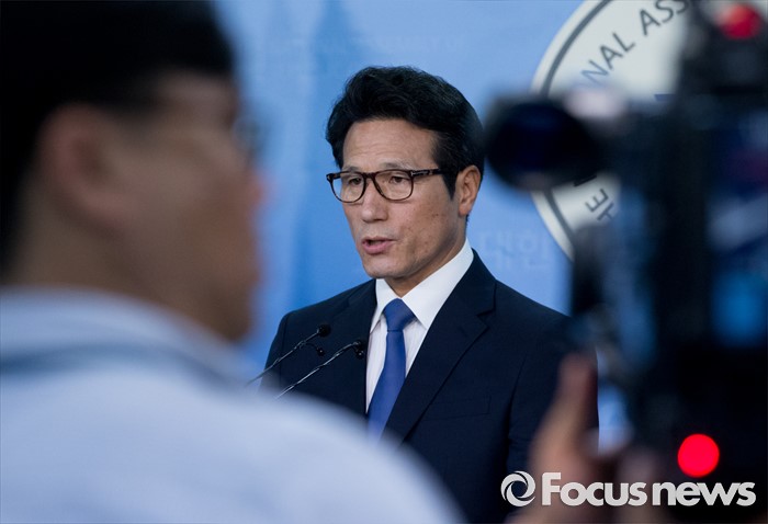(서울=포커스뉴스) 전당대회 출마를 선언한 정병국 새누리당 의원이 22일 오전 서울 여의도 국회 정론관에서 우병우 청와대 민정수석 사퇴 촉구 및 야당 사드배치 반대 주장 중단 등 현안 관련 기자회견을 하고 있다.