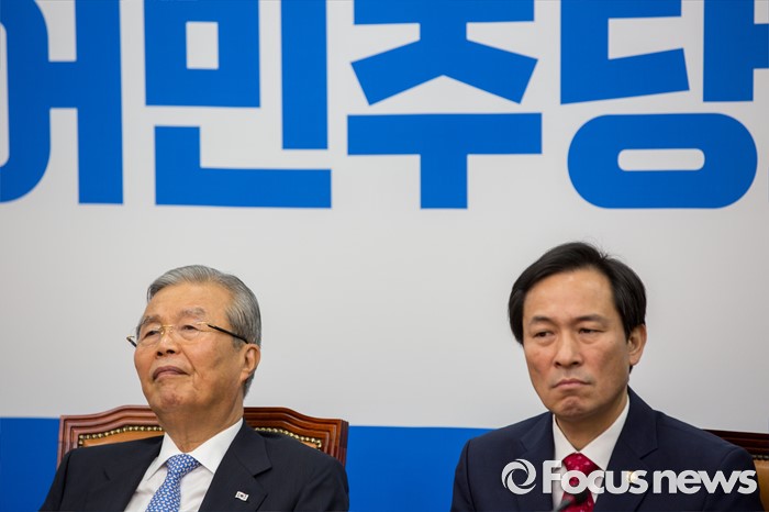 (서울=포커스뉴스) 김종인(왼쪽) 더불어민주당 비상대책위 대표와 우상호 원내대표가 22일 오전 서울 여의도 국회에서 열린 비상대책위원회의에 참석하고 있다.
