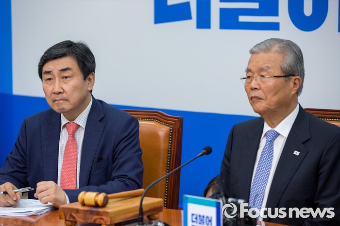 (서울=포커스뉴스) 김종인(오른쪽) 더불어민주당 비상대책위 대표와 이종걸 전 원내대표가 22일 오전 서울 여의도 국회에서 열린 비상대책위원회의에 참석해 회의시작을 기다리고 있다.