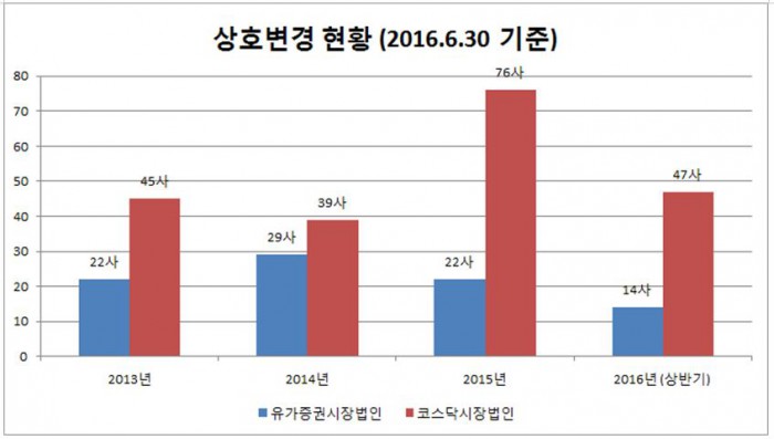 (서울=포커스뉴스) 한국예탁결제원은 22일 올해 상반기 상호를 바꾼 상장기업은 총 61개사로, 지난해 상반기 대비 22% 증가했다고 밝혔다.