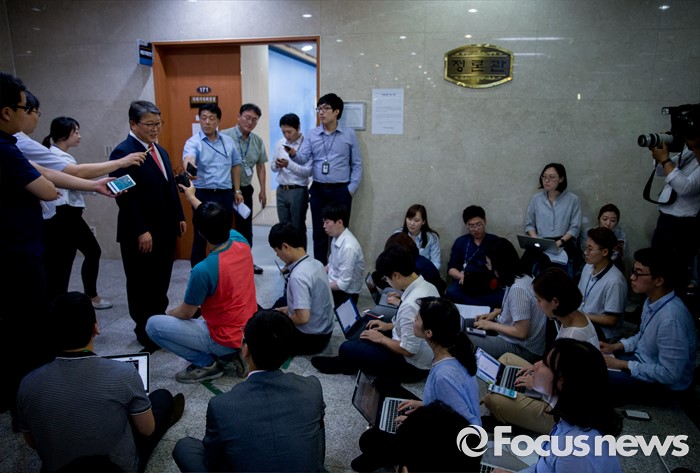 (서울=포커스뉴스) 조원진 새누리당 의원이 22일 오후 서울 여의도 국회 정론관에서8·9 전당대회 최고위원 출마 기자회견을 마친 뒤 취재진 질문에 답하고 있다.