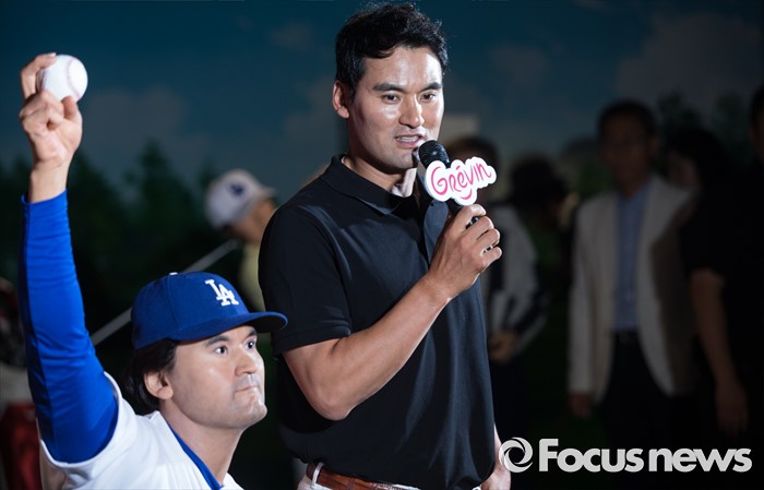 (서울=포커스뉴스) 22일 오후 서울 중구 그레뱅 뮤지엄에서 전 야구선수 박찬호가 '그레뱅 뮤지엄 개관 1주년 특별 강연'에 참석해 인사말을 하고 있다.