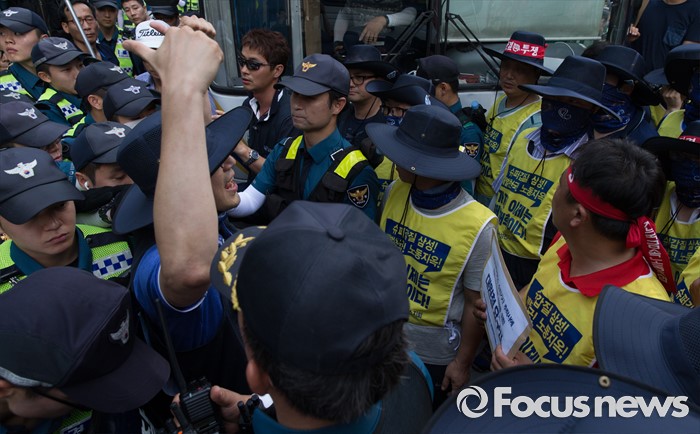 | △ 경찰들과 충돌하는 조합원들 |