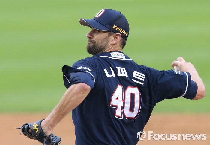 (서울=포커스뉴스) 22일 서울 잠실구장에서 열린 2016 프로야구 두산-LG 경기에서 1회말 두산 선발투수 니퍼트가 투구하고 있다.